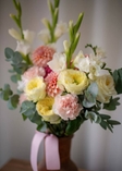 гортензія, жоржина, троянда, гладіолус,, фрезія, гвоздика, евкаліпт