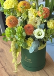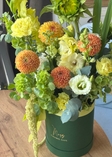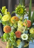 фісташка, евкаліпт, ранункулюс, жоржина, молюцела, гладіолус, еустома, хеліантус, гвоздика