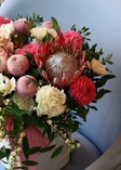 гортензія, хризантема, жоржина , фрезія, гвоздика, протея, еуфорбія, евкаліпт, фісташка