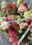 троянда, гвоздика, еустома, тюльпан, танацетум, лепідіум, хелеборус, евкаліпт, матіола